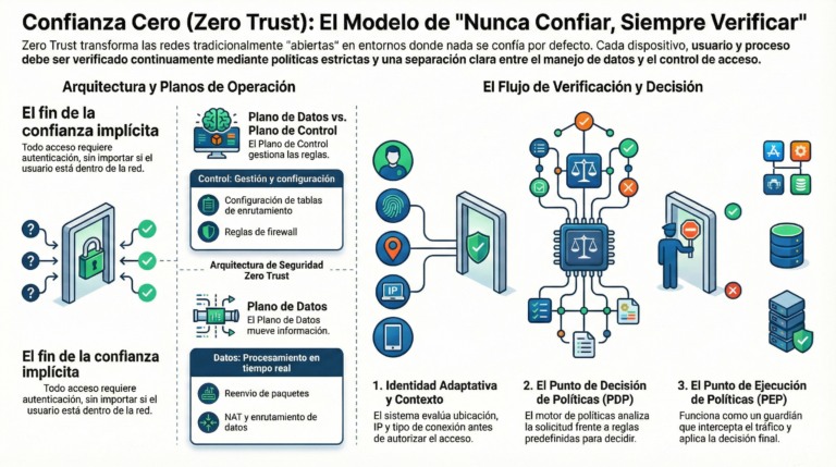 El modelo Zero Trust orquestra sujetos, sistemas, planos de control y motores de políticas para crear una defensa profunda y dinámica. En un mundo donde el perímetro ha desaparecido y los activos están distribuidos, la verificación constante no es un exceso de celo, sino la única estrategia viable para garantizar la integridad corporativa.